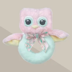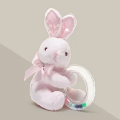 Bearington Baby Cottontail Plush Stuffed Animal Pink Bunny Shaker Toy Ring Rattle, 5.5″