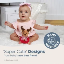Bearington Baby Polky Blue Plush Stuffed Animal Teddy Bear Shaker Toy Ring Rattle, 5″, For Ages 0-14