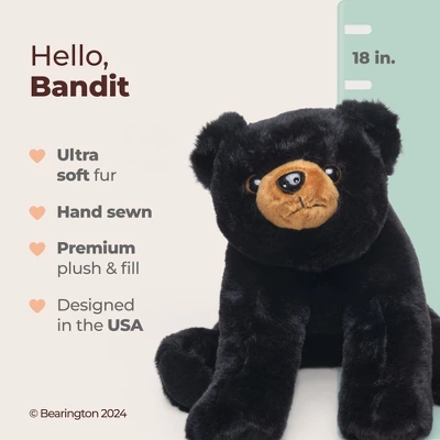 - MEET BANDIT: The adorable 18-inch black bear stuffed animal toy designed to bring joy to babies and kids alike. With its irresistibly fluffy and cuddly nature, Bandit is more than just cute โ it’s the perfect snuggle buddy that promises endless moments of comfort and companionship.