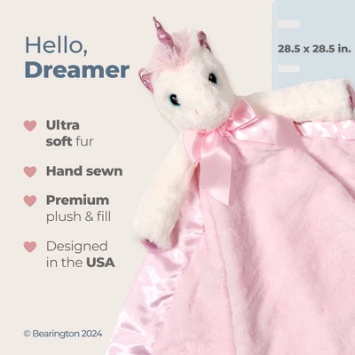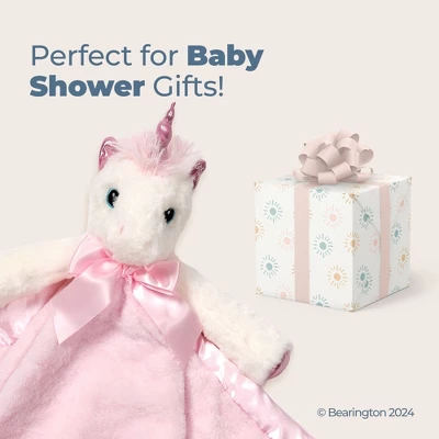 - A SPECIAL GIFT: Comes rolled and ready to give with a pink satin bow, makes this lovie a unique gift for baby showers, newborn baby boys and girls, or momâs unicorn theme nursery décor