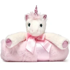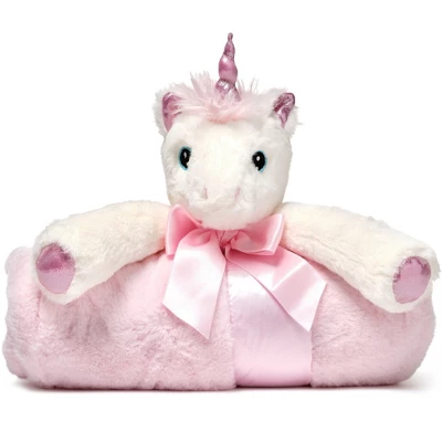 - STROLLER SIZE BLANKET: Large blanket (28.5â x 28.5â) is the perfect size for covering infants or toddlers in a stroller or car seat while they snuggle with the plush unicorn