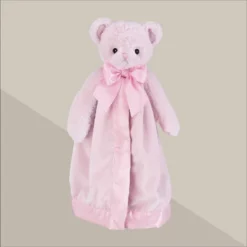 - PLAYFUL DESIGN: This baby lovey blanket boasts an adorable teddy bear head and arms that are sure to melt your heart. The silky satin trim adds a touch of luxury, framing the plush bear beautifully. Its pink satin lined ears stand out, complemented by embroidered safety eyes that ensure a safe and huggable playtime. Complete with a pink satin bow, this security blanket with stuffed animal is an irresistible buddy for your little one’s adventures and bedtime snuggles.