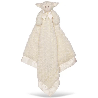 - CUTE AND CUDDLY: Super soft ultra premium cream swirly fabric security blanket with cream satin lining, combined with a cute lamb stuffed animal head and arms, machine washable
