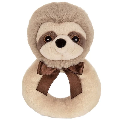 - ENGAGING RATTLE FEATURE: This 5.5-inch stuffed sloth comes with a gentle ring rattle, providing sensory stimulation and entertainment for your little one, helping them develop motor skills and hand-eye coordination. The machine washable sloth stuffed animal is made with luxuriously soft cream velour plush materials, embroidered safety eyes, and a silky satin bow.