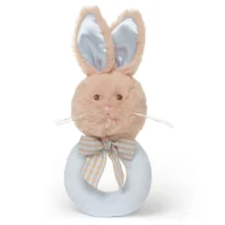 - ENGAGING RATTLE FEATURE: This 5.5-inch stuffed bunny comes with a gentle ring rattle, providing sensory stimulation and entertainment for your little one, helping them develop motor skills and hand-eye coordination. The machine washable baby rabbit rattle features a plush bunny rabbit with a sweet face and a satin bow.