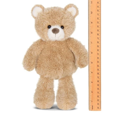 - BUSTER THE TAN TEDDY BEAR: Adorably cute 8.5″ tall sitting teddy bear stuffed animal with ultra soft scruffy fur, cuddly body and sweet expressive face, surface washable