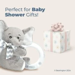 - CUTE AND FUN: Adorably cute grey elephant rattle toy with plastic shake ring with grey and white beads sits 5″ tall
