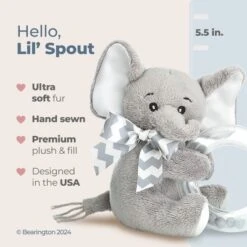 - PREMIUM MATERIALS: Elephant is made with luxuriously soft gray velour plush material, silky white satin ears, embroidered safety eyes, and a satin chevron bow