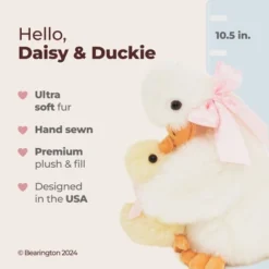 - MEET DAISY & DUCKY: Adorable and endlessly cuddly, Daisy and Ducky sit at 10 inches tall, featuring soft plush fur and matching pink polka dot satin ribbons. Experience the magic of Bearington™ as you explore our cozy collection of stuffed Easter ducks, classic stuffed animals, and other enchanting plush characters. Whether you’re looking for an Easter duckie, a stuffed duck, a plush toy, or just a cute and cuddly companion, Daisy and Ducky is the perfect choice.