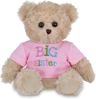 Bearington Ima Big Sister Plush Stuffed Animal Teddy Bear In Pink T-Shirt, 12 Inches