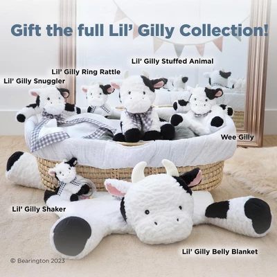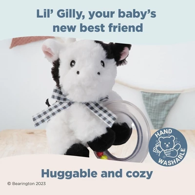 - IRRESISTIBLY CUTE: Introduce your newborn to joy with Bearington Lil’ Gilly Cow Baby Rattle. This 5.5-inch baby rattle is the best rattle for babies 0-6 months. Its adorable design and soft touch make it the perfect baby rattle cow companion.