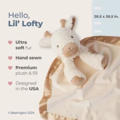 - MUST-HAVE TOYS: Discover Bearington’s toys! Crafting plush toys for 25+ years, we offer lifelike stuffed animals like baby girl lovie, teddy bears, baby loveys, and giraffe baby stuff. Our security blankets provide comfort to babies, kids, and adults. Experience cuddly joy with Bearington’s extraordinary creations like this beautiful giraffe lovey blanket.