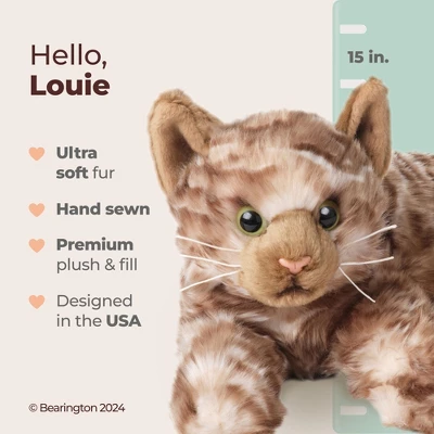- CUTE KITTY: Adorably cute tiger tabby cat plush toy with soft fur, sparkling eyes, expressive face and string whiskers, 15 long