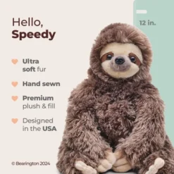 - Meet Speedy the sloth: This 12” tall plush sloth is a perfect gift for the animal lover in your life. Speedy is a 3-toed sloth who’s ultra-cozy and made with premium stuffing. Surface washable